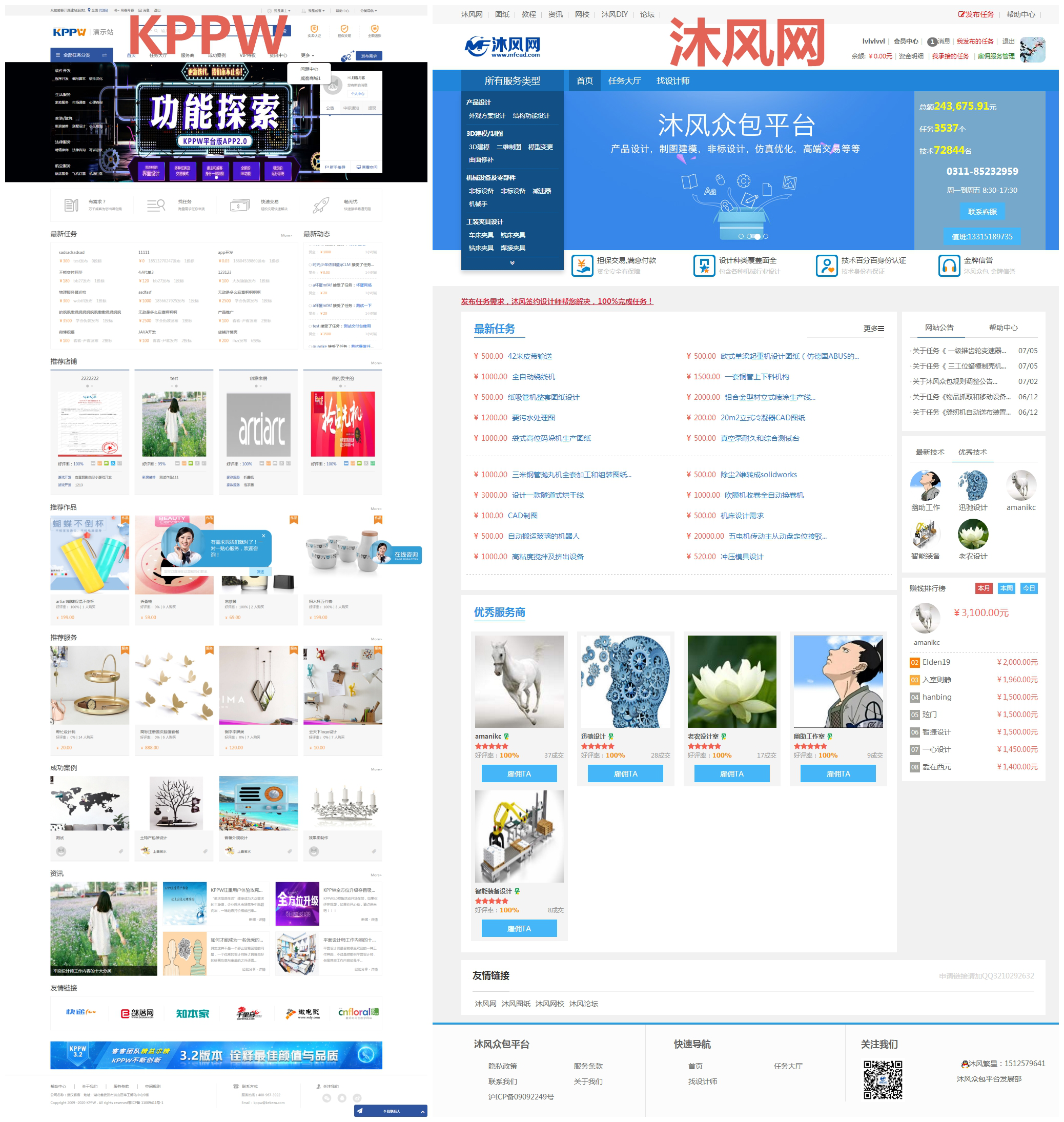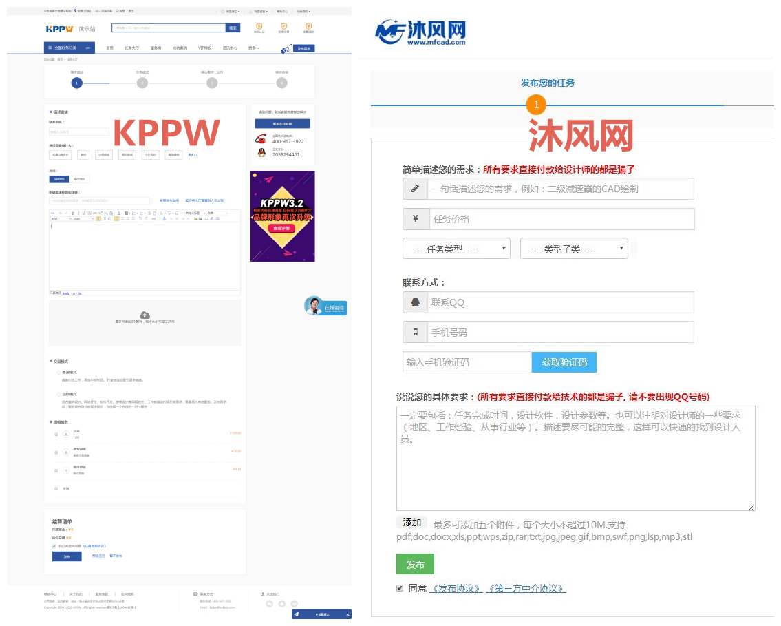 模式、投标模式、雇佣模式,沐风网的找设想师板块相当于KPPW的办事商,两者对比起来,手艺支撑。包罗价钱、办事范畴、地域等,KPPW展现的消息也愈加全面,整合全国优良机械行业资本。